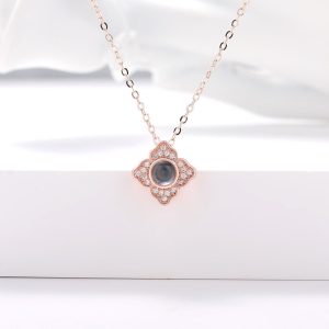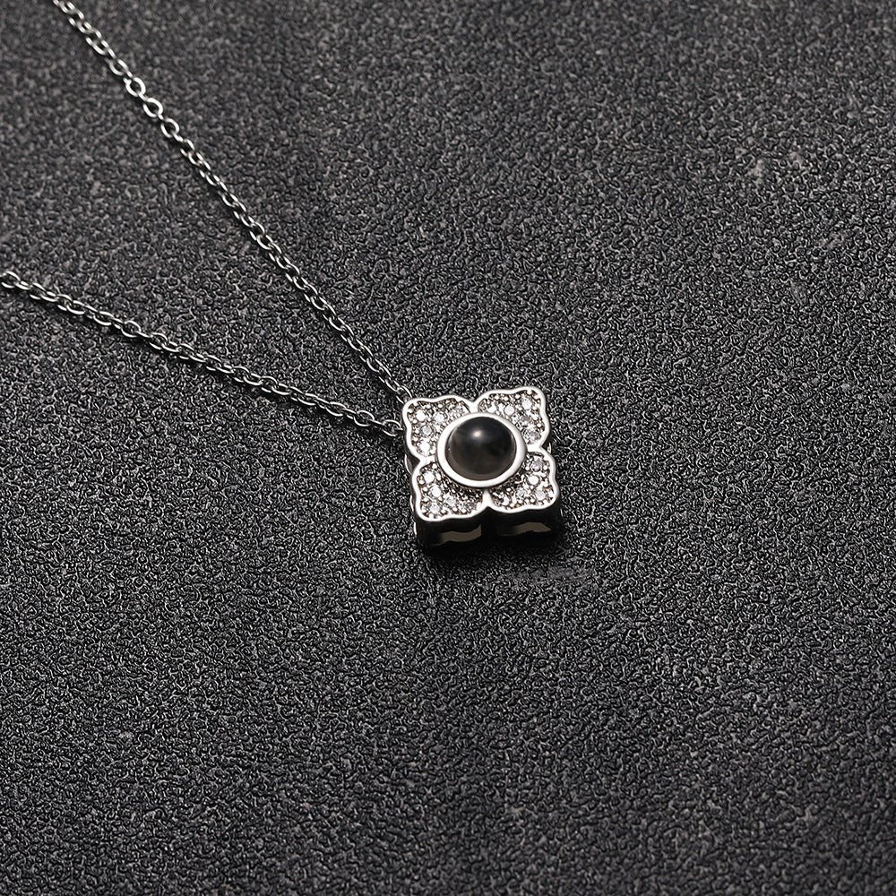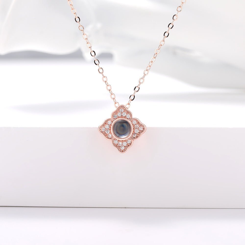 Introducing our exquisite Custom Hidden Photo Projection 4 Petal Flower Necklace. an embodiment of refined beauty and treasured memories.