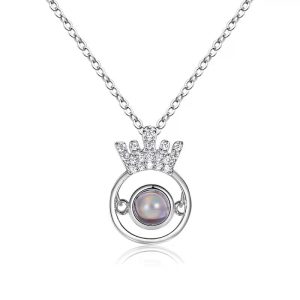 Custom Hidden Photo Projection Round Crown Diamond Necklace