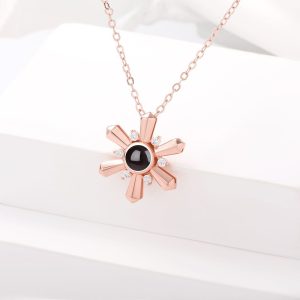 At the heart of the pendant lies a black zircon gem. concealing a hidden. customizable photo. This unique feature reveals your cherished memory through light or projection. creating a perfect blend of personalization and sophistication.